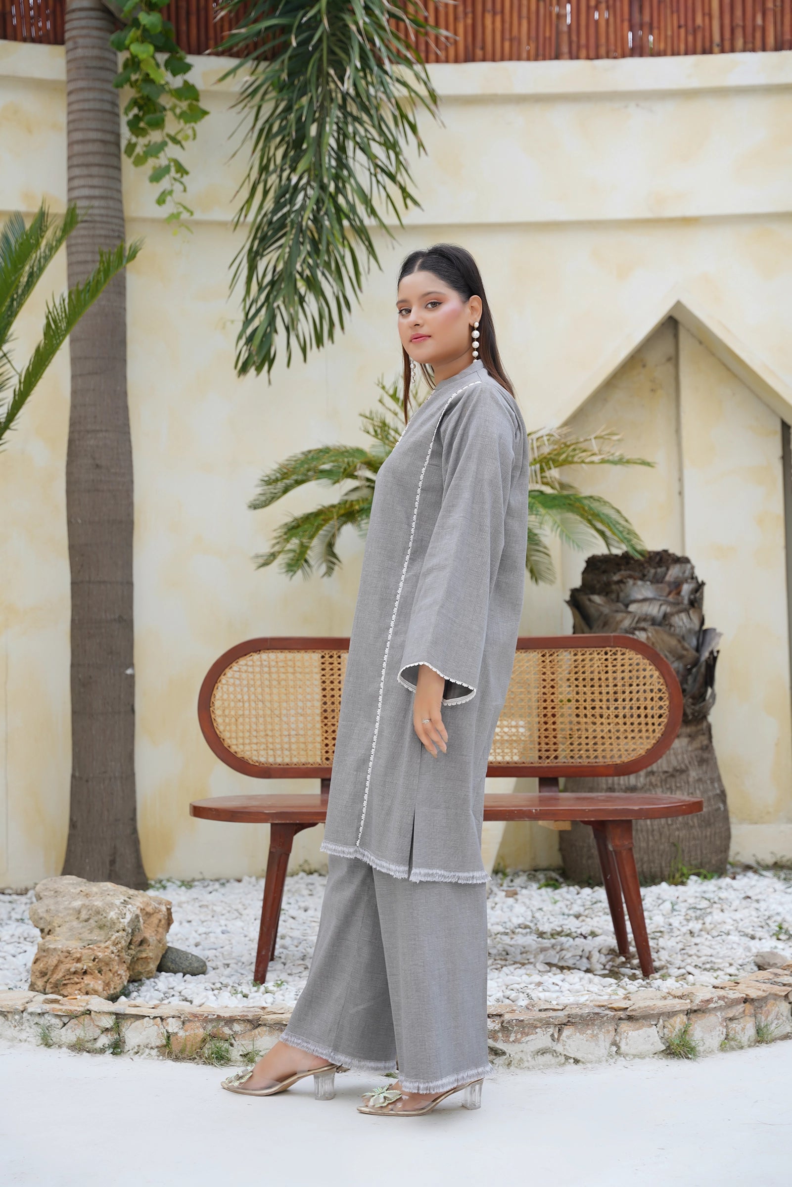 Frost Mist – Ash Grey Pure Rice Karandi Winter Set