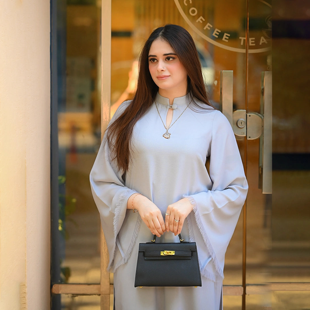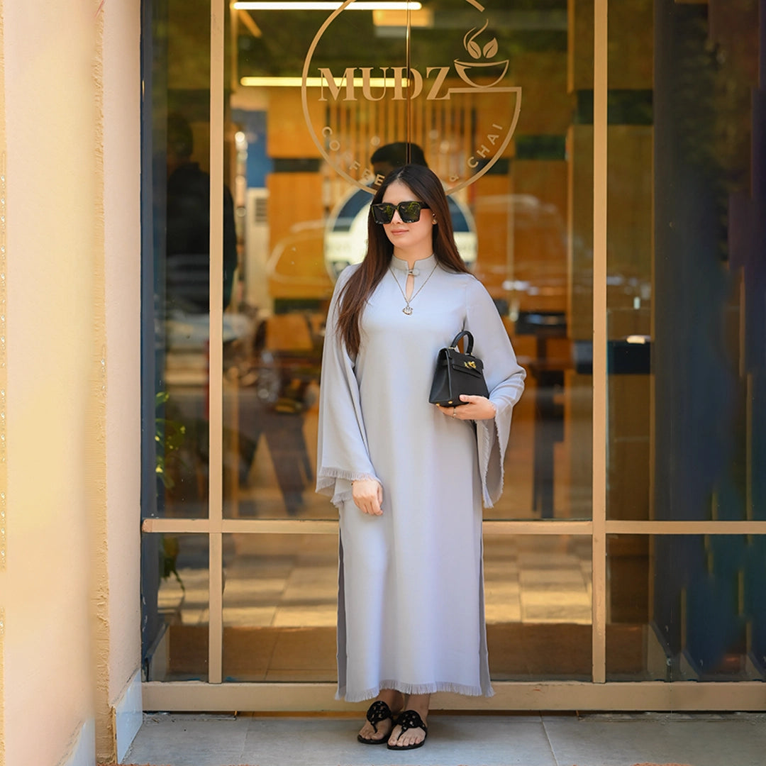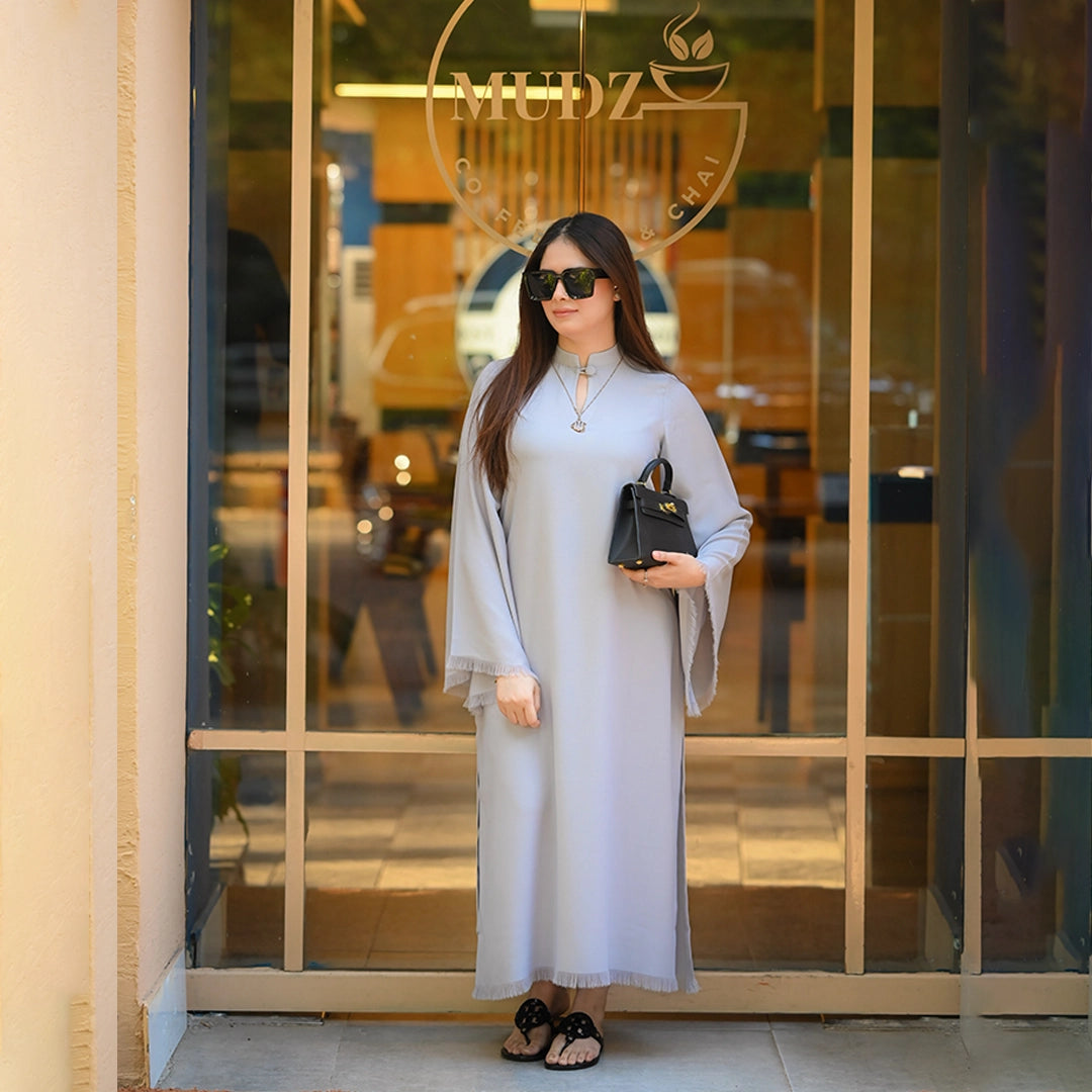 Neckline: Minimal round neckline with keyhole detailing — modern yet refined.